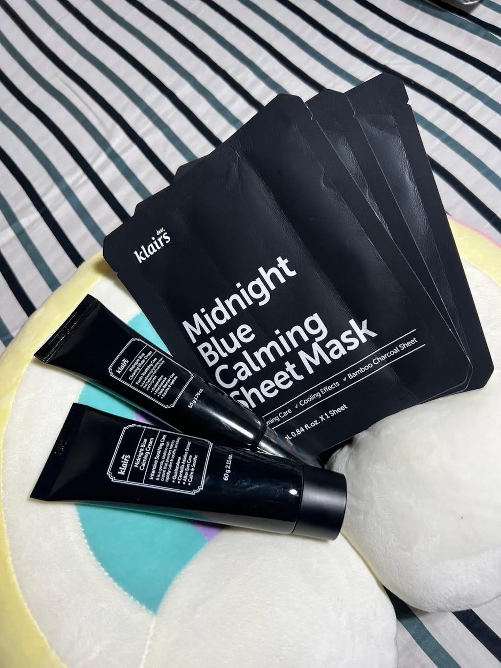 - Guaiazulene — A soothing chamomile extract that calms irritation and gives the cream its blue tint