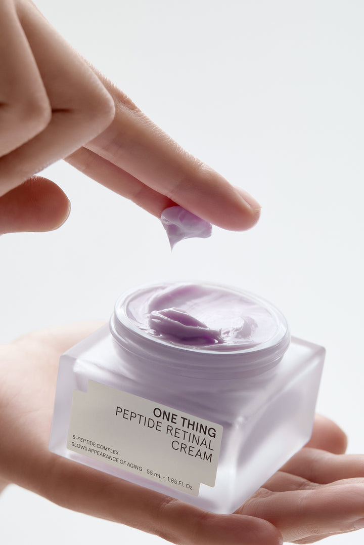 Peptide Retinal Cream, infused with a synergistic blend of 5 Peptide Complex and Retinal. This nourishing anti-aging cream targets five key signs of aging: pores, elasticity, wrinkles, skin tone, and density.